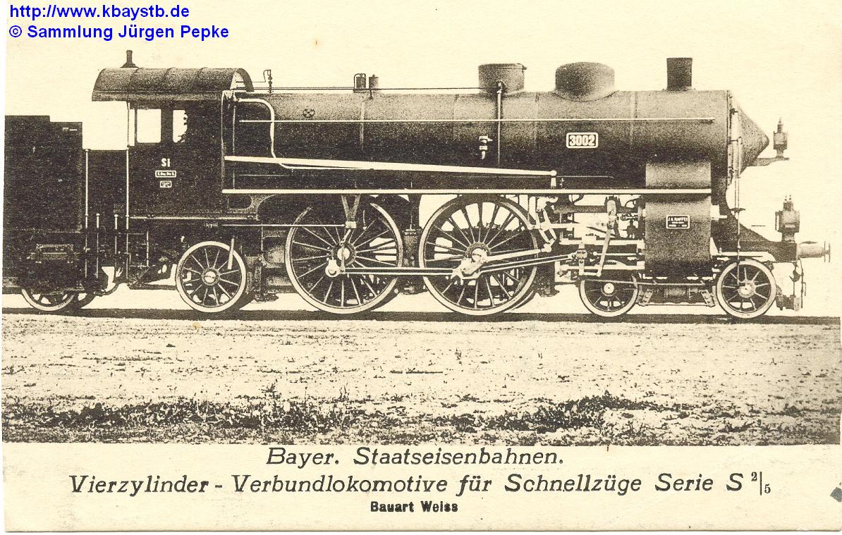 S 2/5 Nr.3002 Lieferfirma: J.A. Maffei (München) Baujahr: 1904 Fabrik-Nr.: 2365 DR-/DRG-Nummer: -- --- |